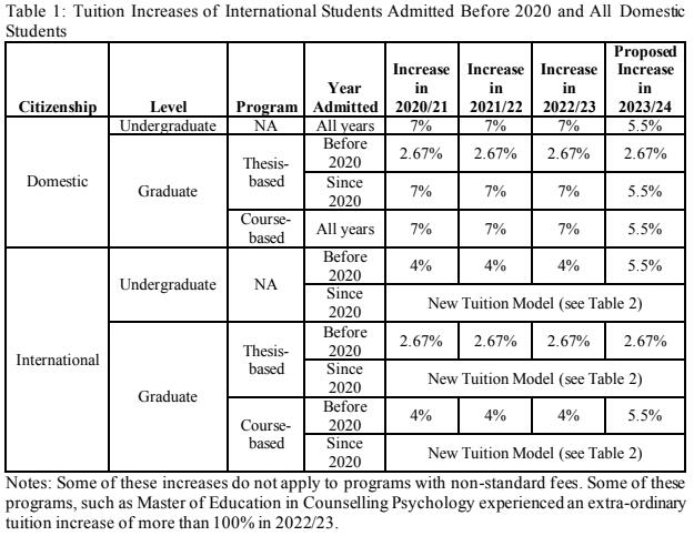 That is the maximum yearly increase of domestic tuition allowable under Albertan law. It is also the raise in tuition that the university is pushing onto domestic students right now.For domestic students paying approximately $6500 in 2022/23, that's an addition of roughly $360, or a month and a half of food. Added on to an average book cost of $3500 and residence rent at $15,000, we're seeing more and more students get squeezed out or left in crippling debt.